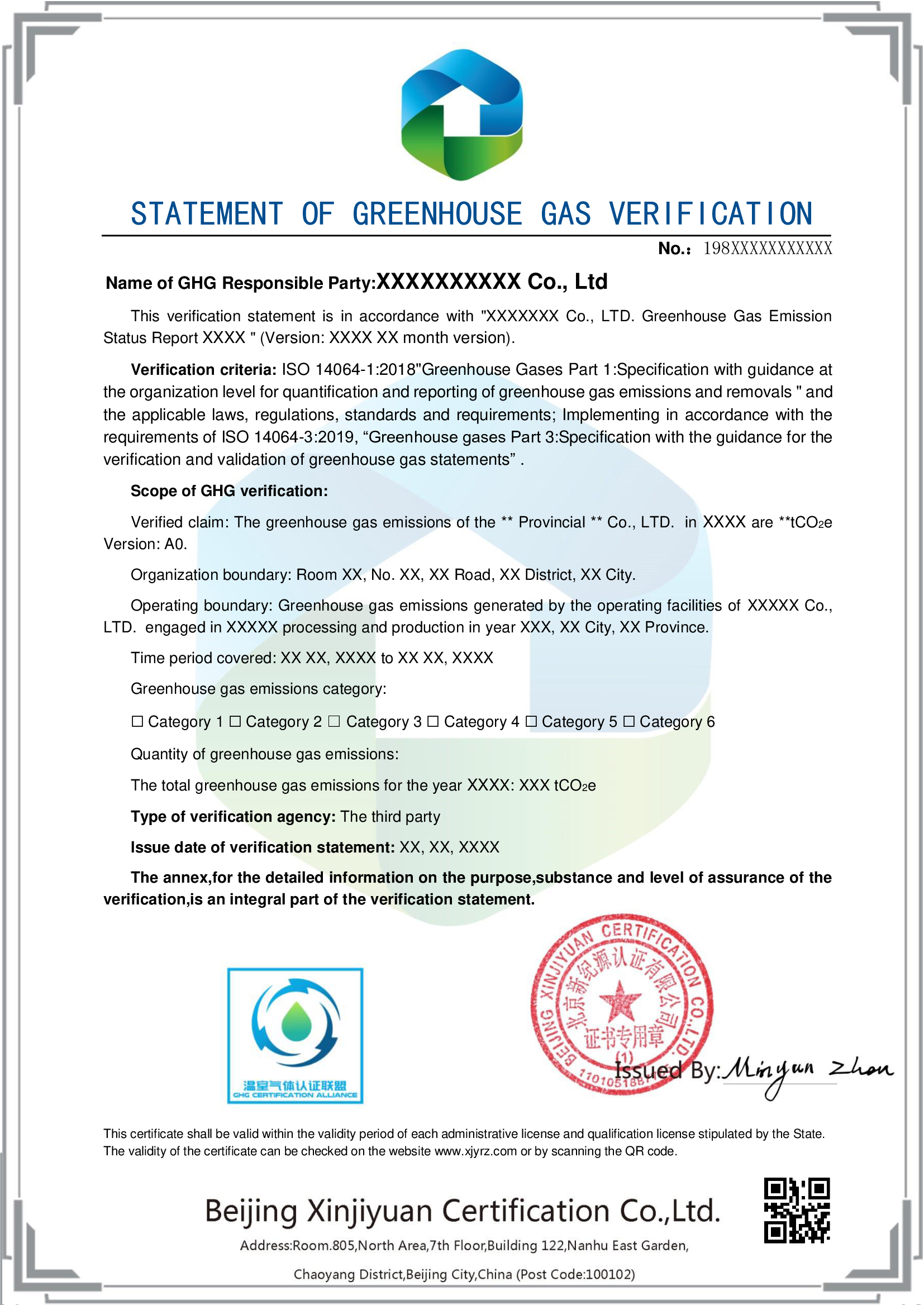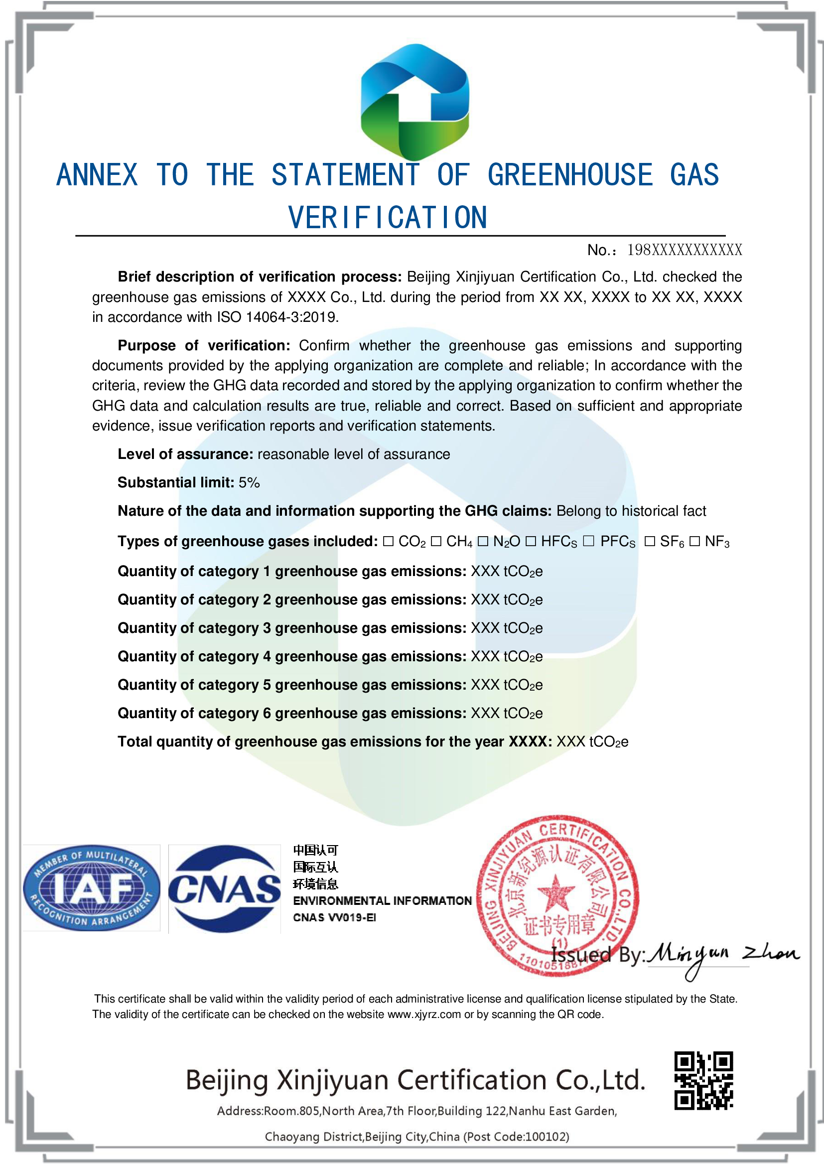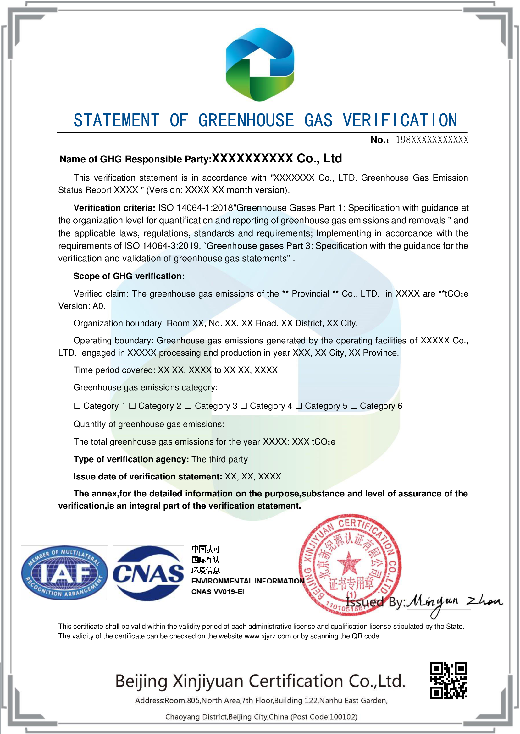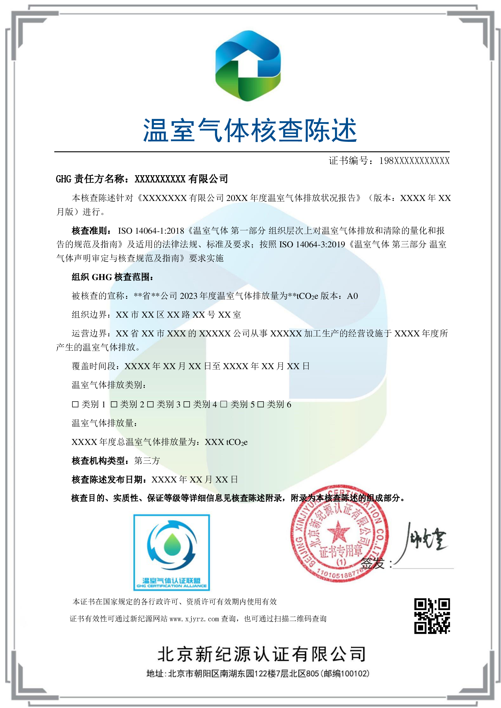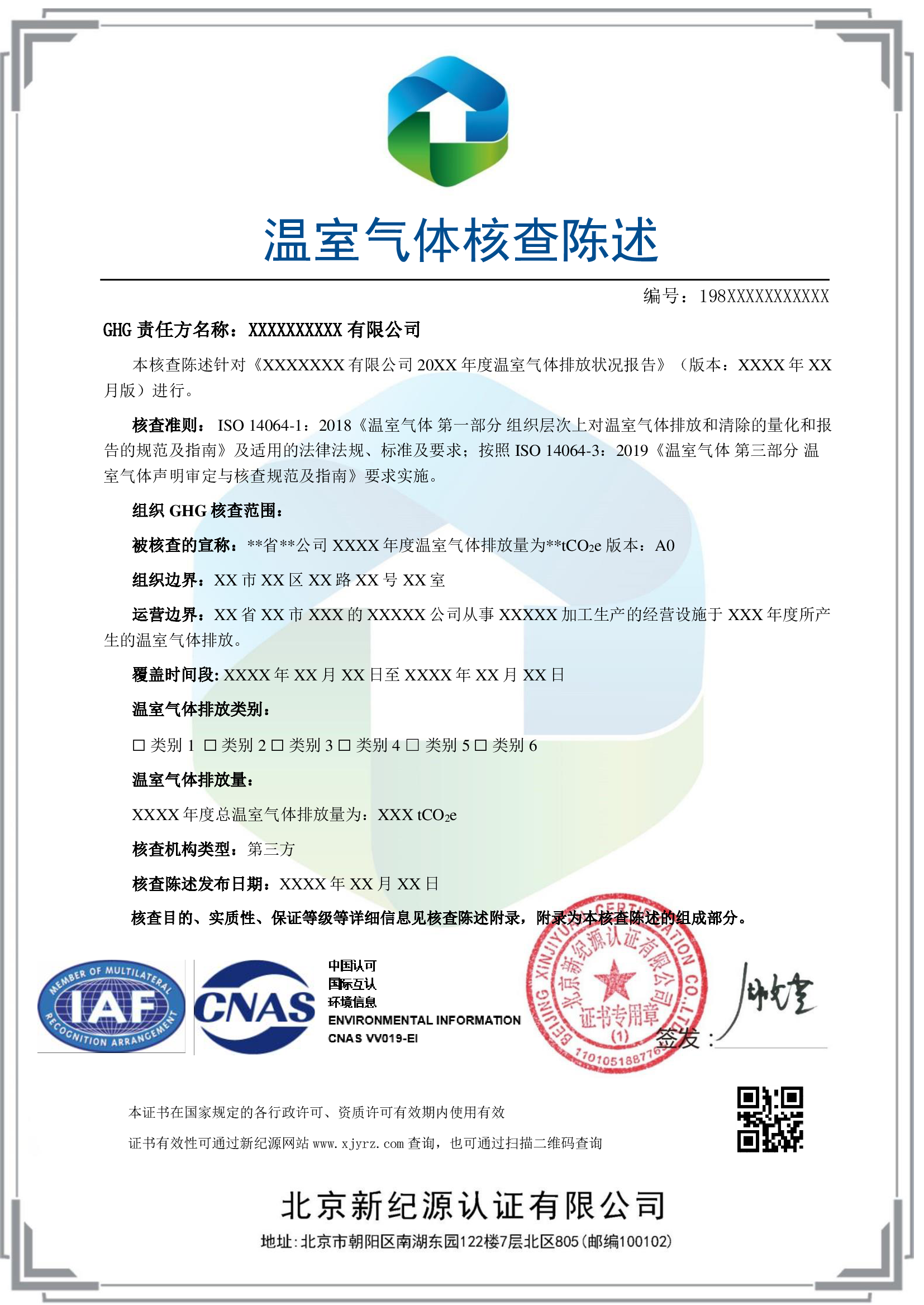 北京新纪源认证有限公司(Beijing Xinjiyuan Certification Co., Ltd. 简称XJY)是经工商行政管理部门登记注册,具有独立法人资格,并经中国国家认证认可监督管理委员会批准确认的第三方认证机构(认证资格批准号:CNCA-R-2015-198,管理体系认可证书号:CNAS C178-M,产品认可证书号:CNAS C178-P)