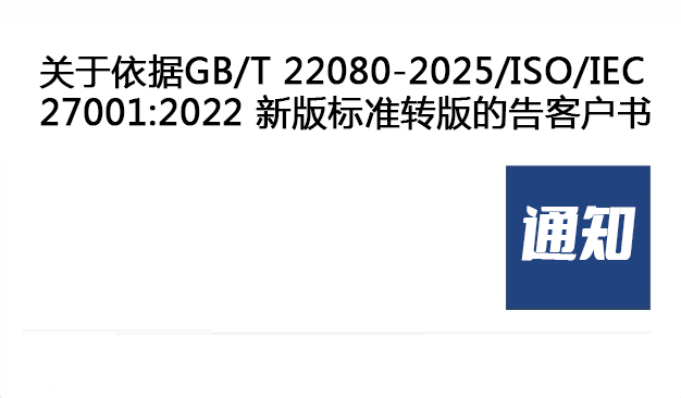 关于依据GB/T 22080-2025/ISO/IEC 27001:2022 新版标准转版的告客户书